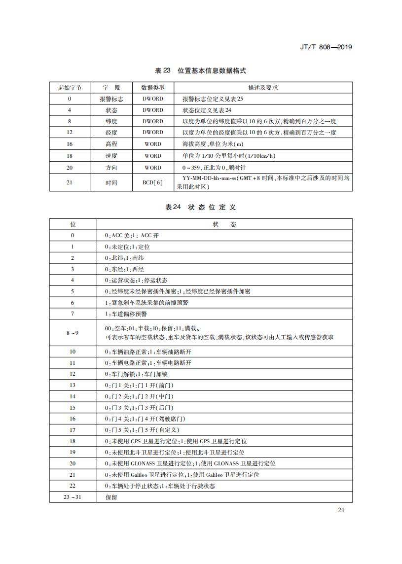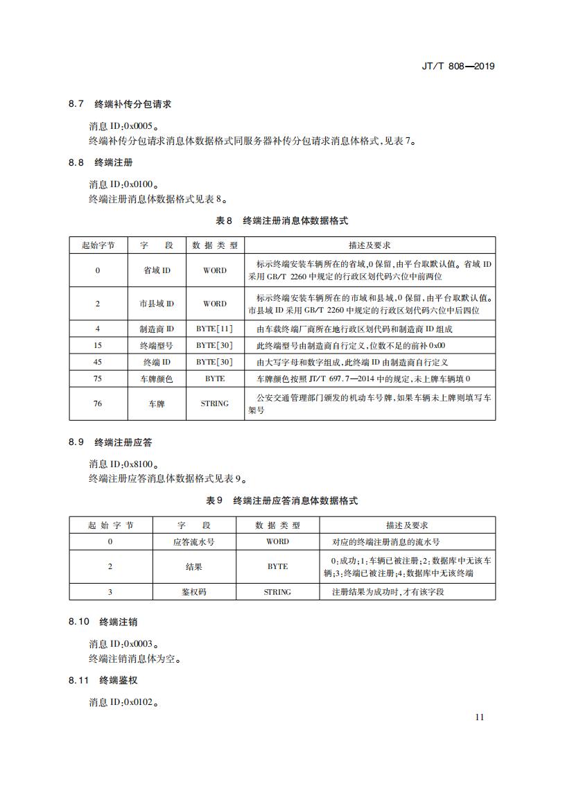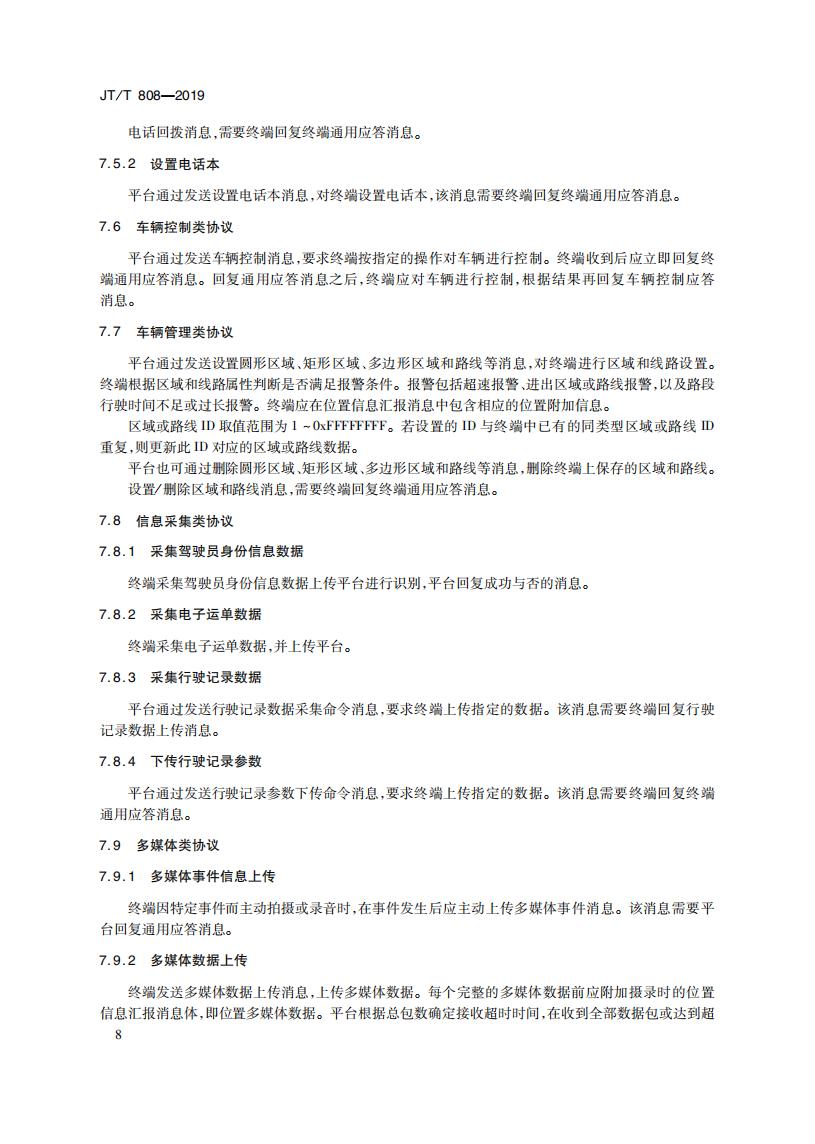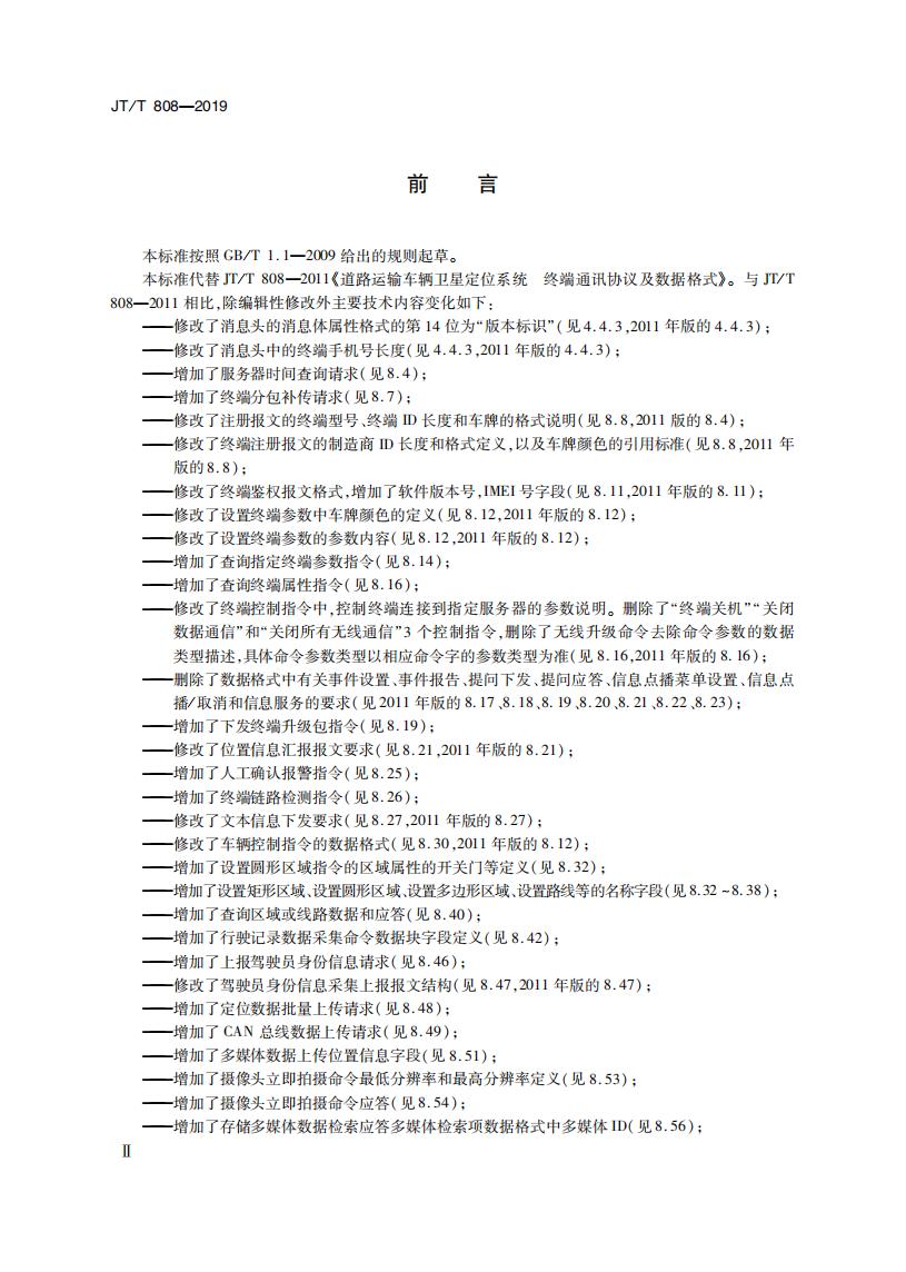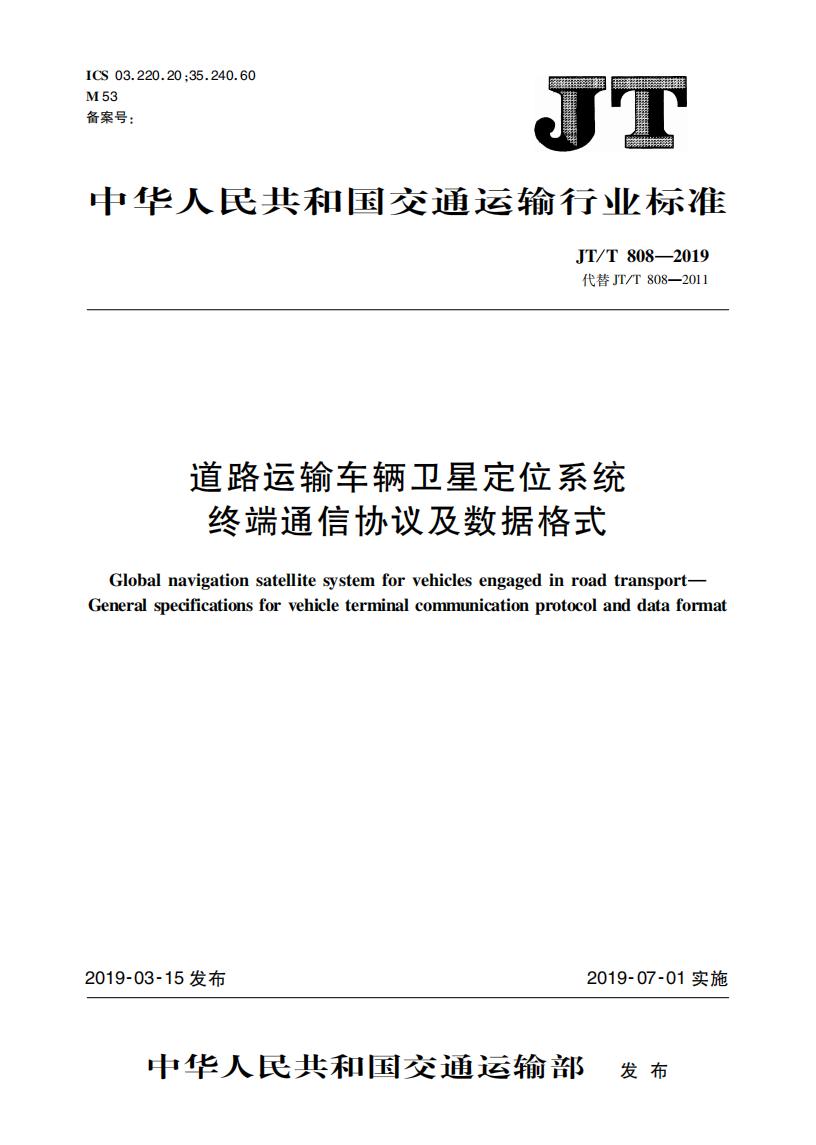 JTT808-2019 道路運(yùn)輸車輛衛(wèi)星定位系統(tǒng)(終端通信協(xié)議及數(shù)據(jù)格式)
