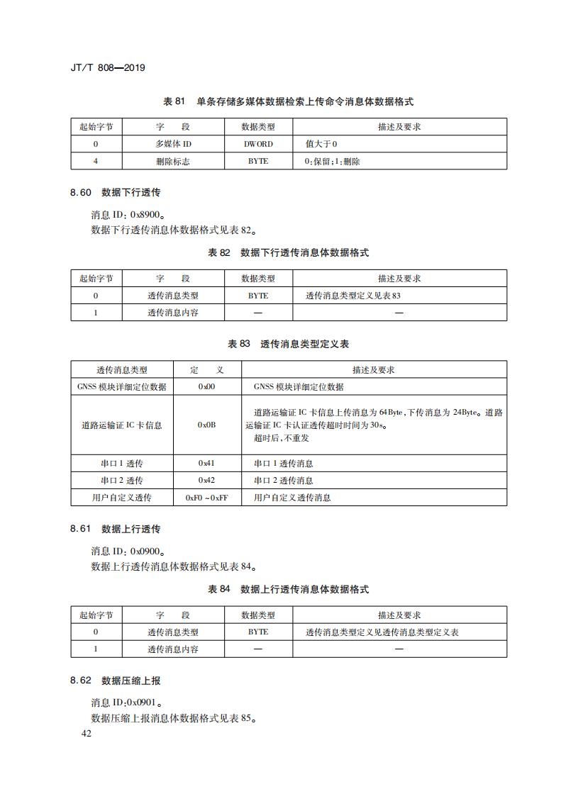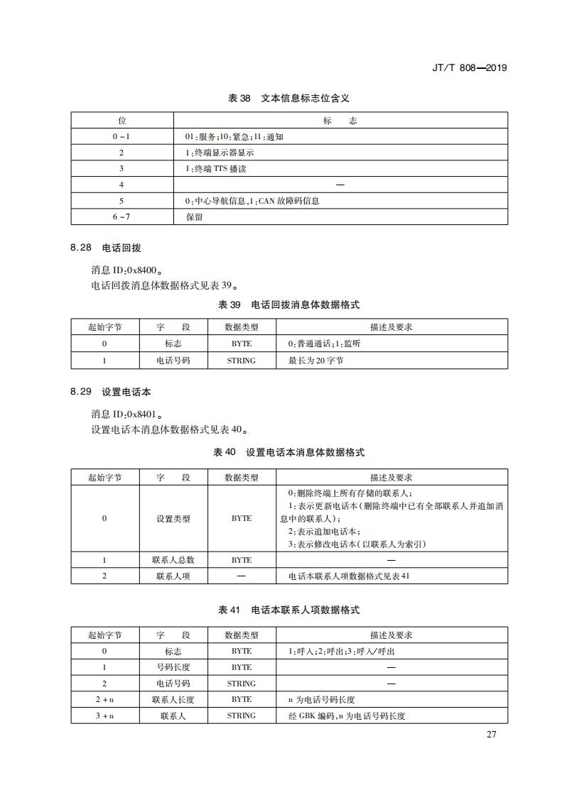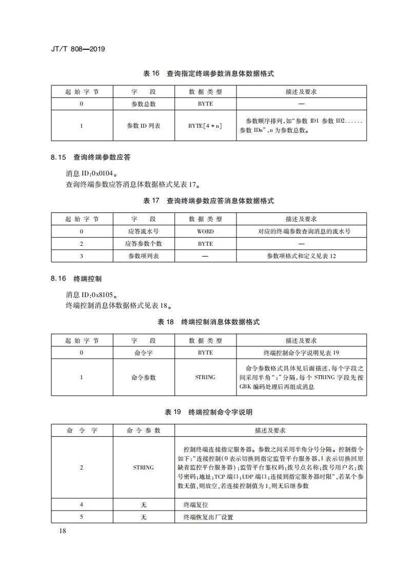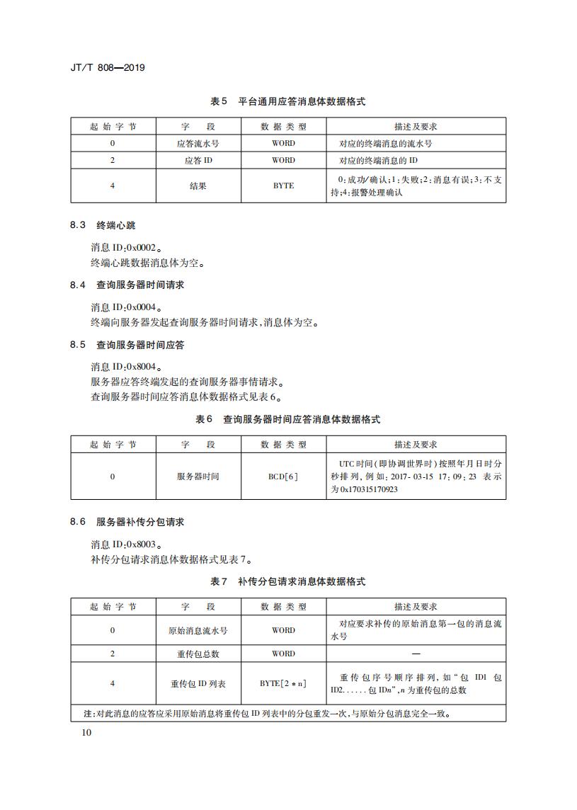 JTT808-2019 道路運(yùn)輸車輛衛(wèi)星定位系統(tǒng)(終端通信協(xié)議及數(shù)據(jù)格式)