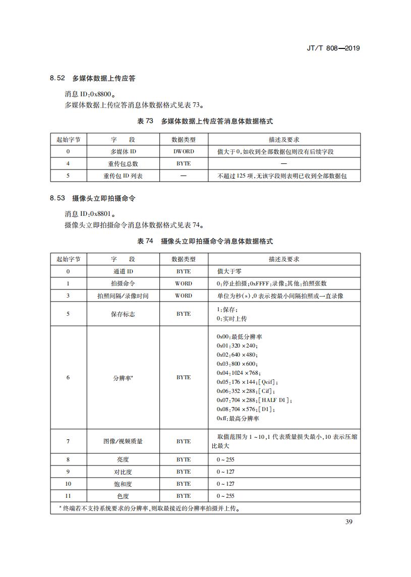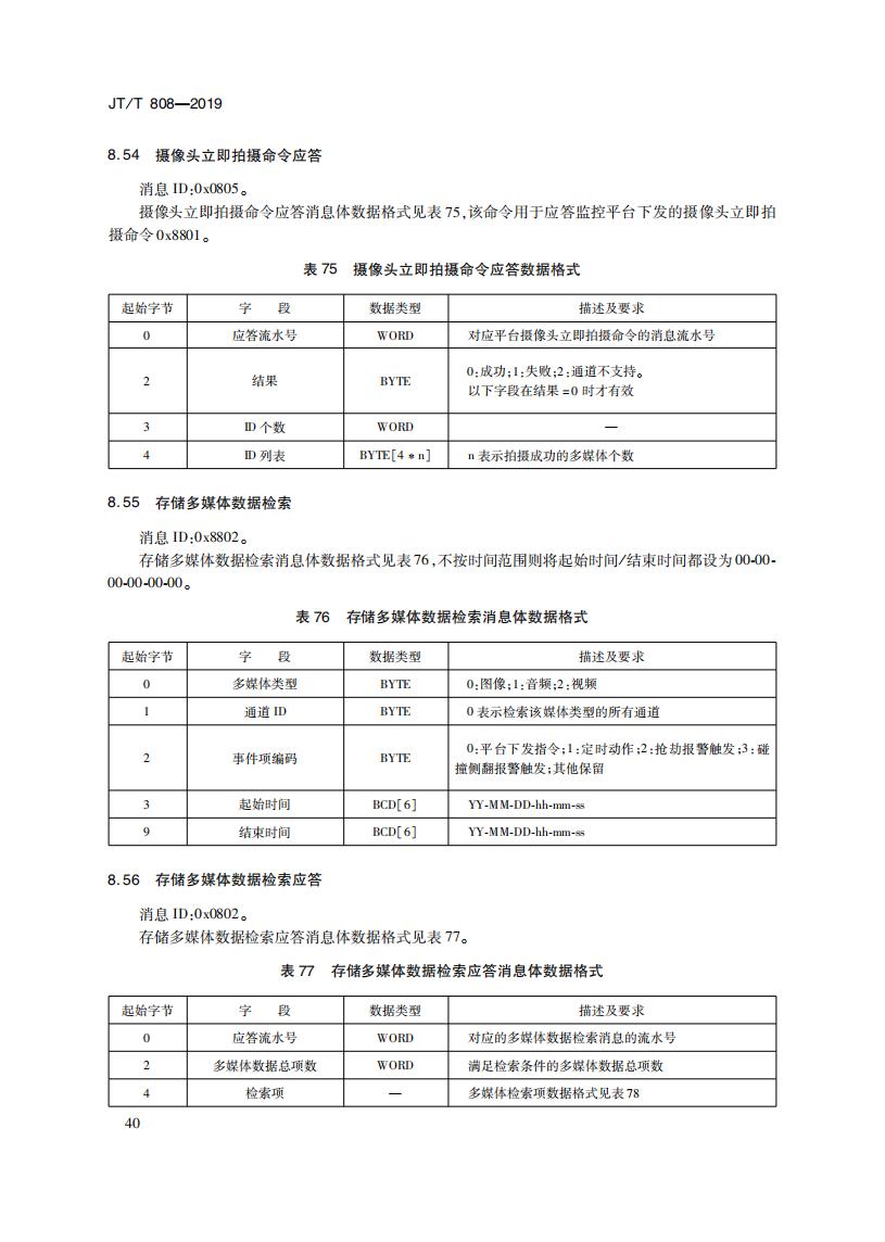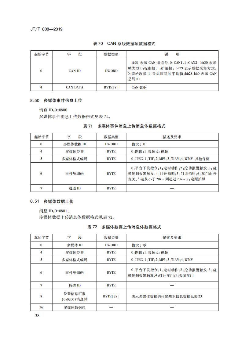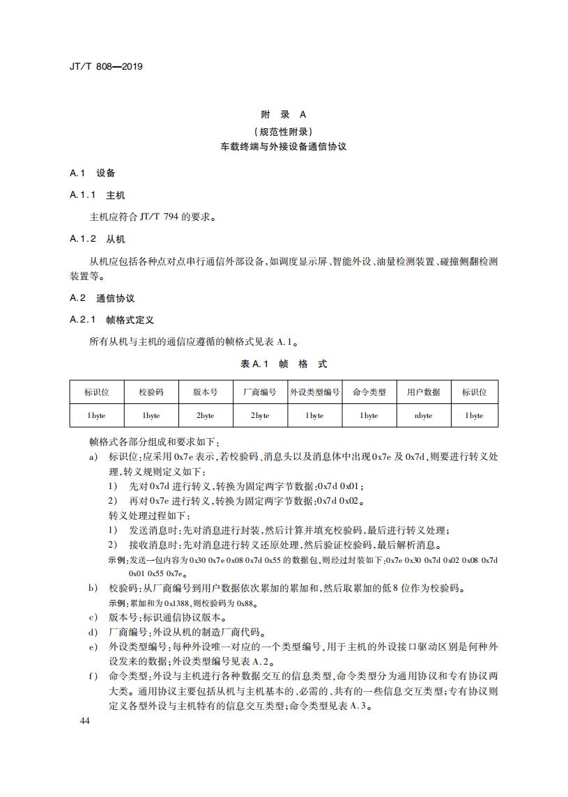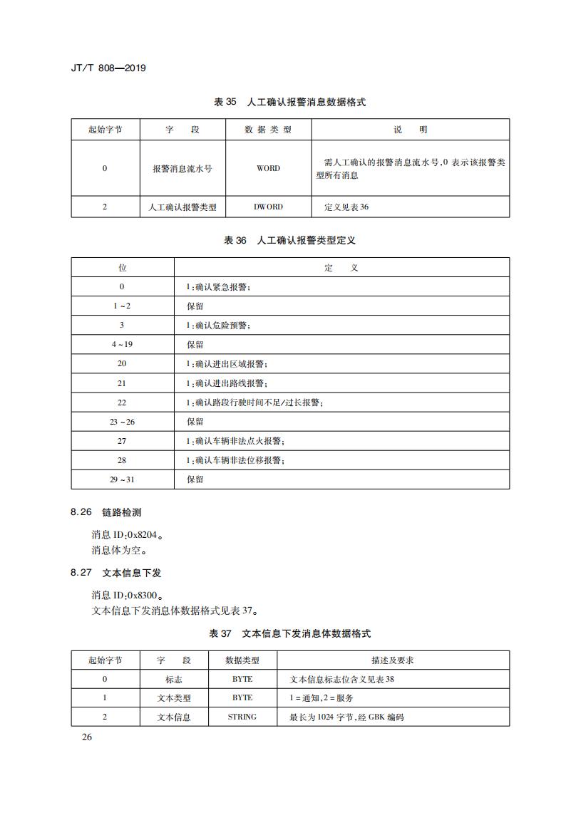 JTT808-2019 道路運(yùn)輸車輛衛(wèi)星定位系統(tǒng)(終端通信協(xié)議及數(shù)據(jù)格式)