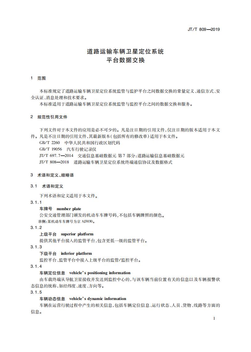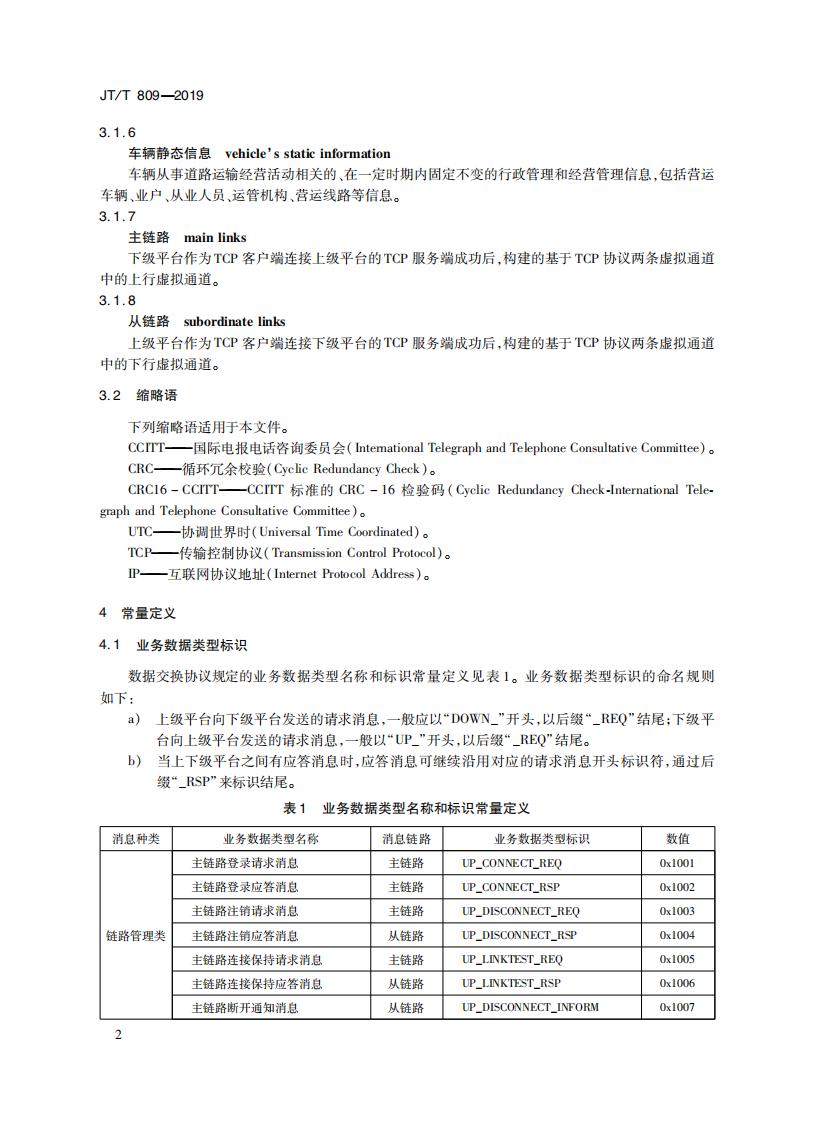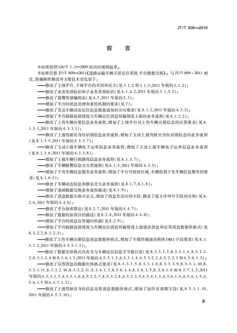 JTT809-2019 道路運輸車輛衛星定位系統(平臺數據交換)