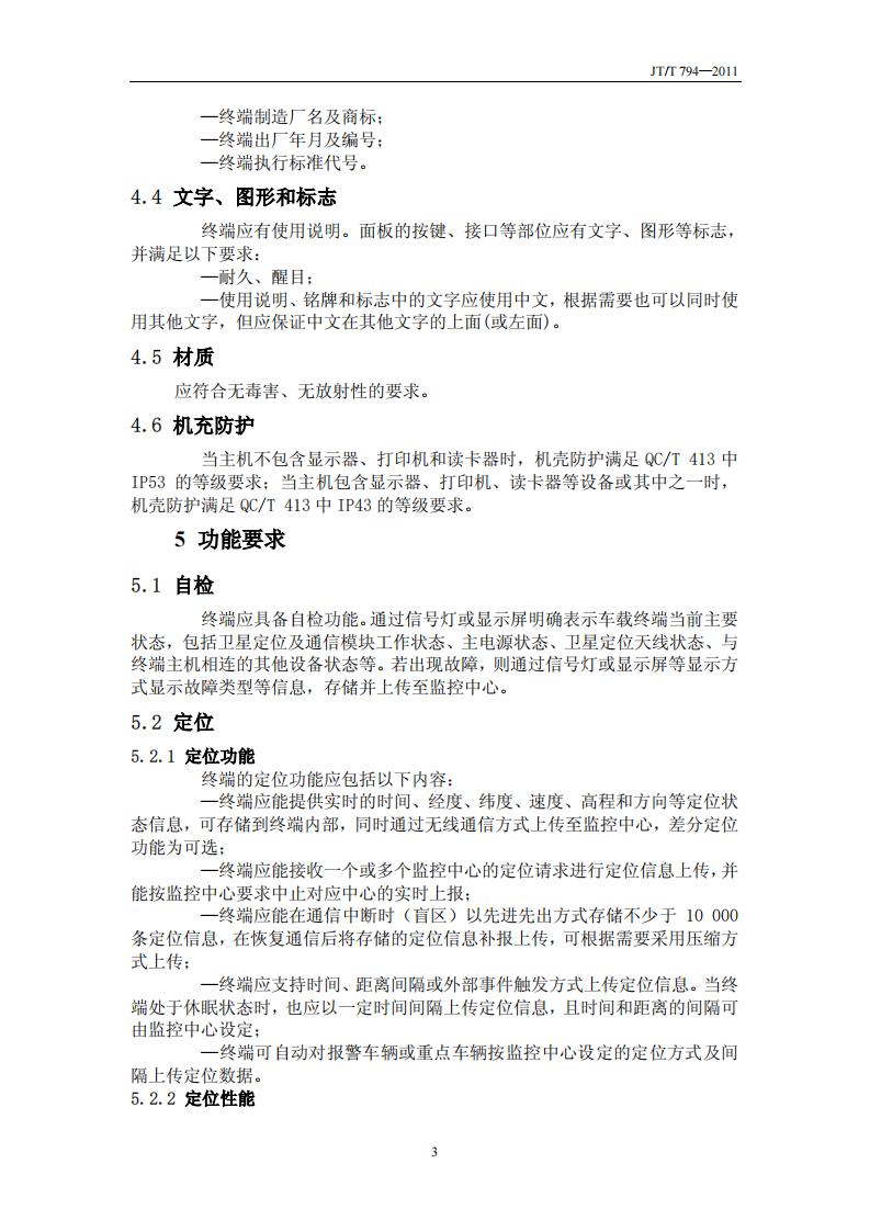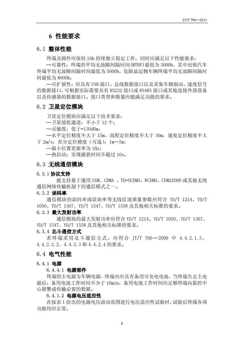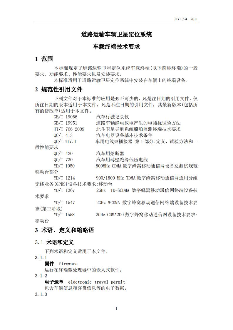 JTT794-2011 道路運輸車輛衛(wèi)星定位系統(tǒng)(車載終端技術(shù)要求)
