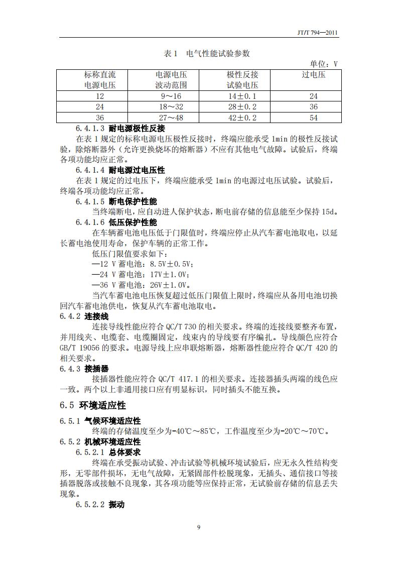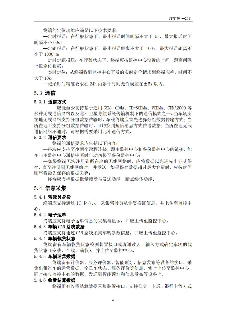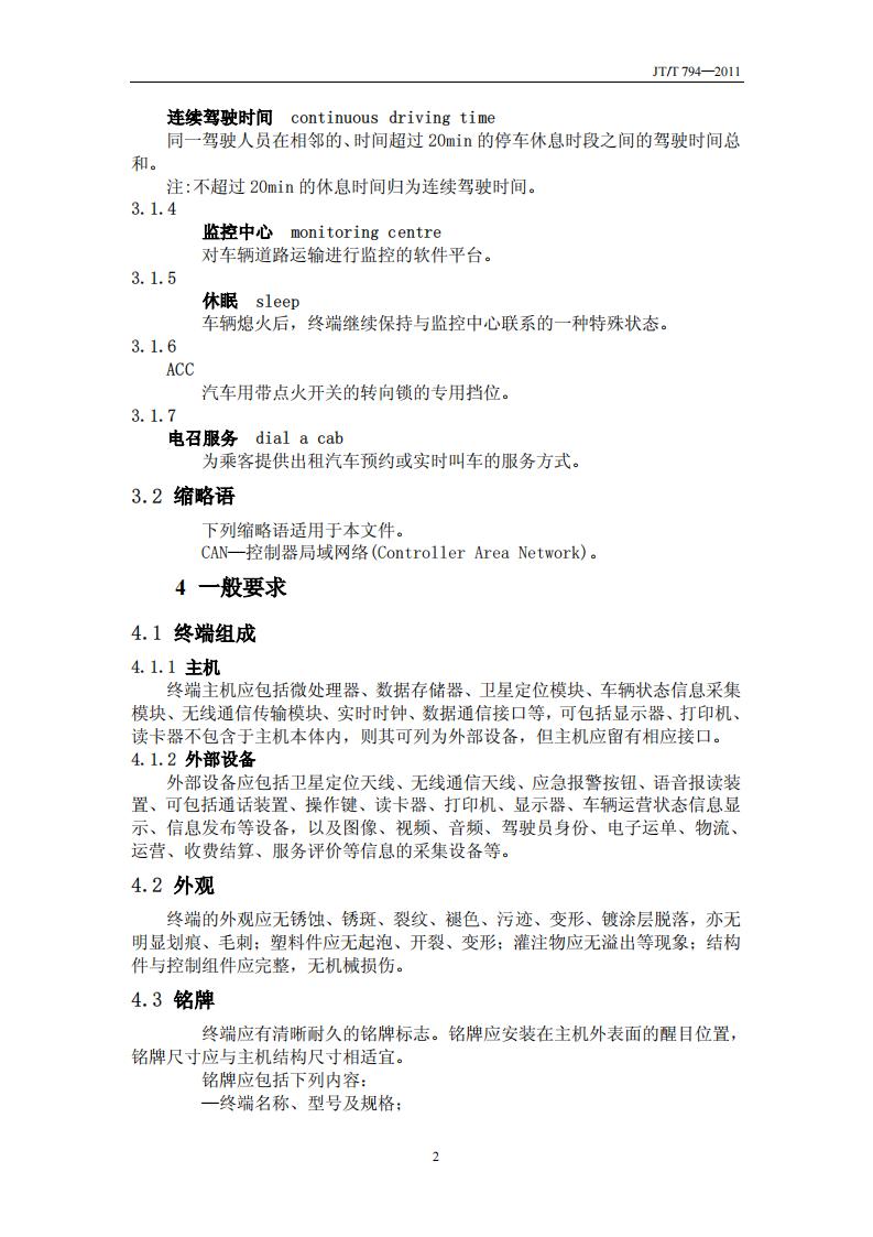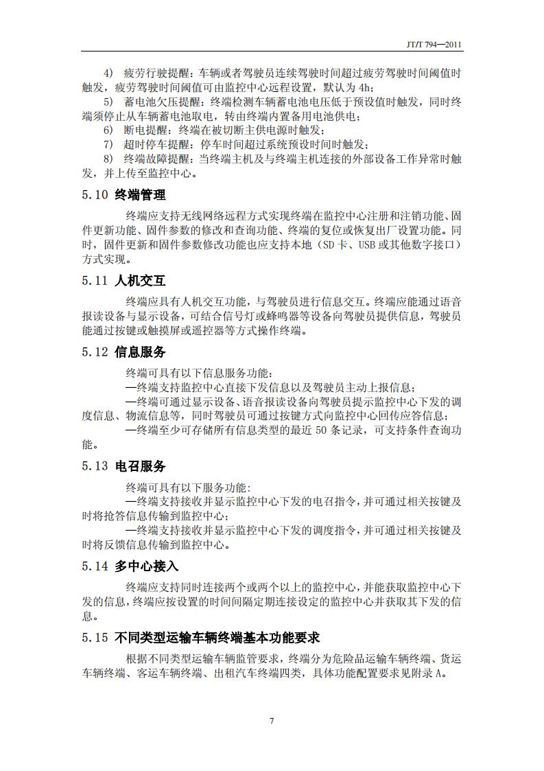 JTT794-2011 道路運輸車輛衛(wèi)星定位系統(tǒng)(車載終端技術(shù)要求)