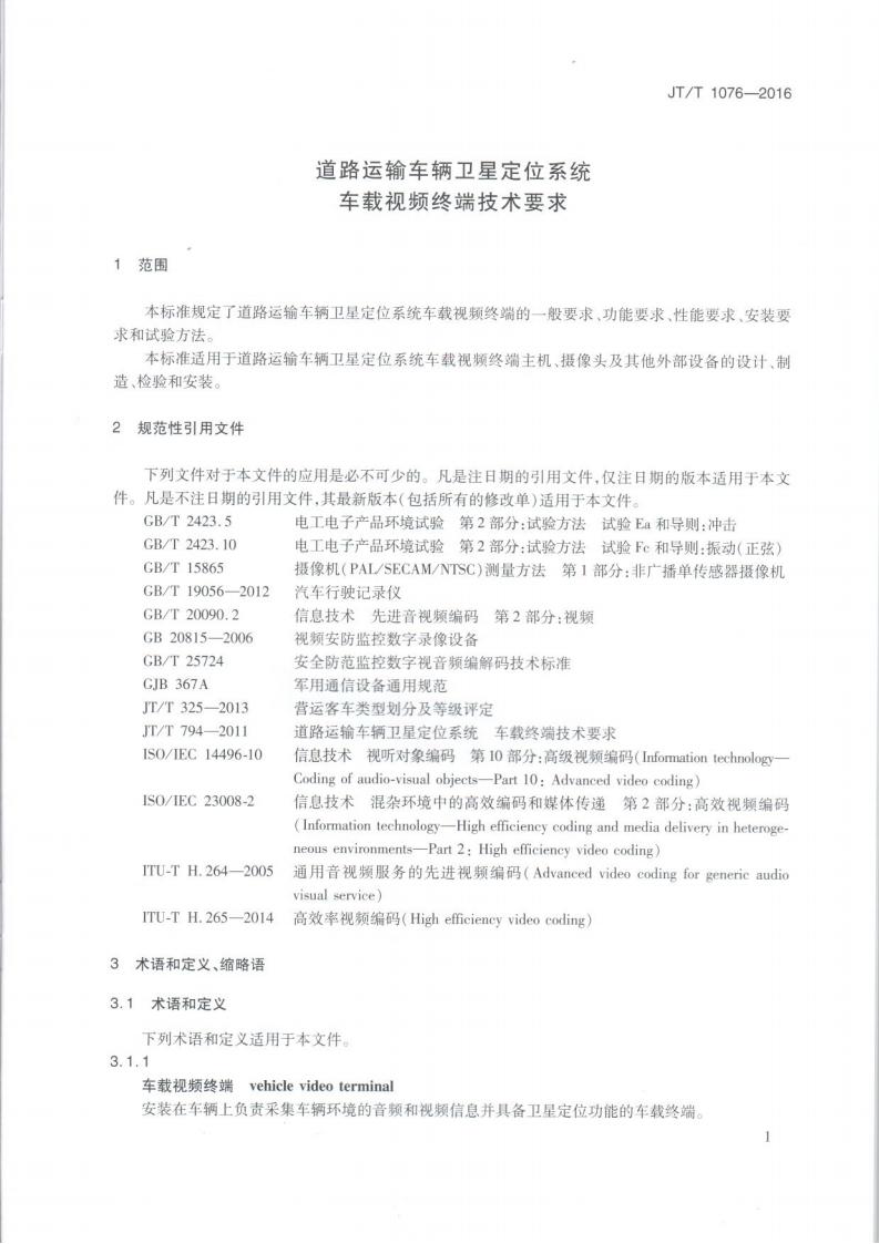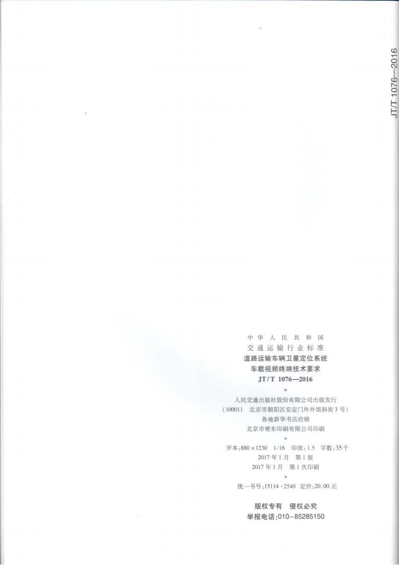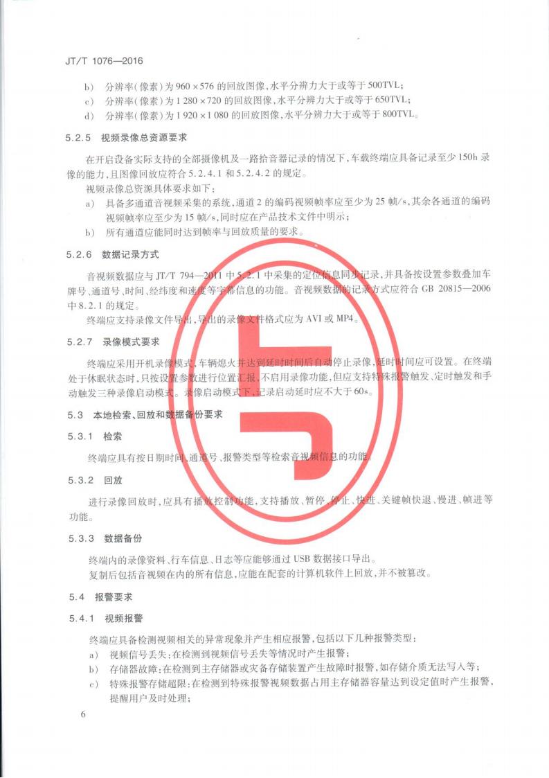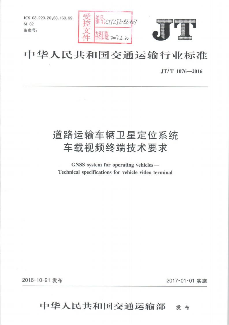 JTT 1076-2016 道路運輸車輛衛星定位系統車載視頻(終端技術要求)