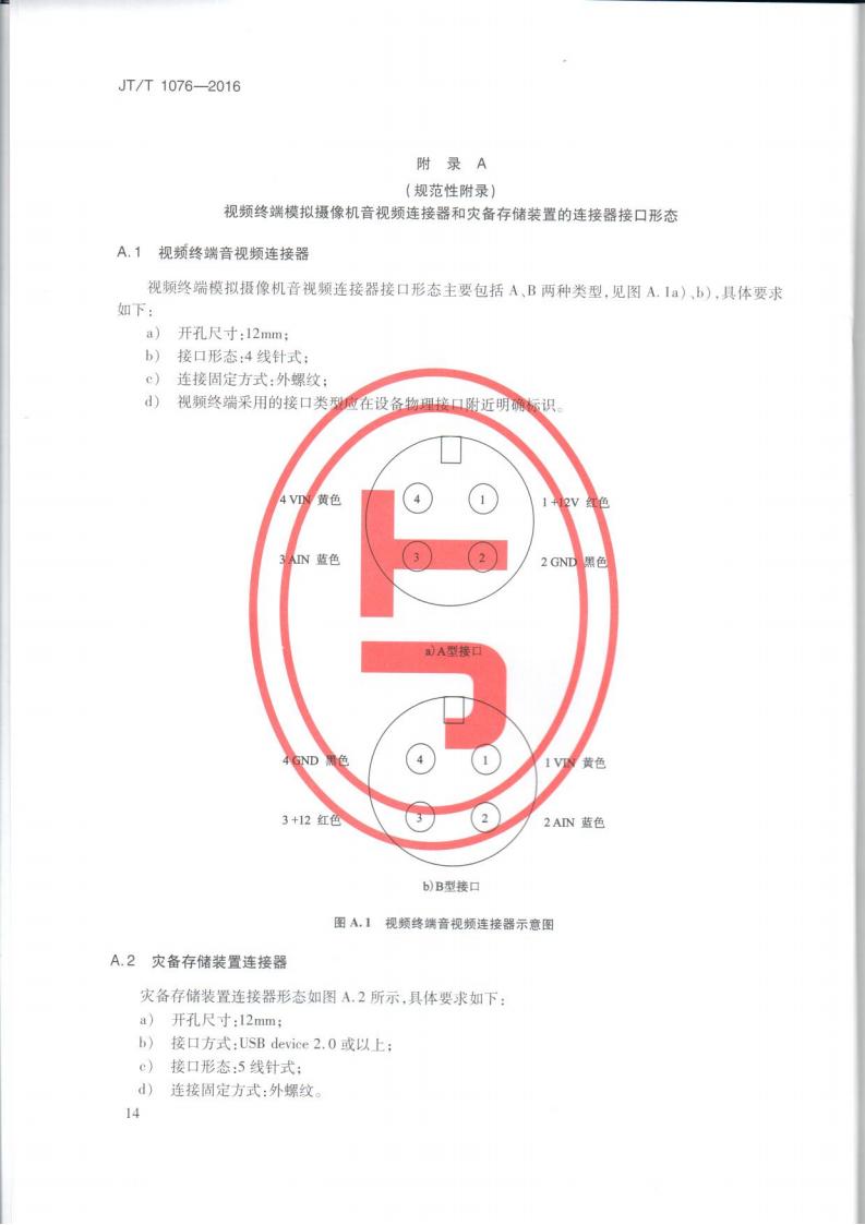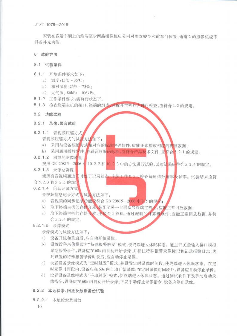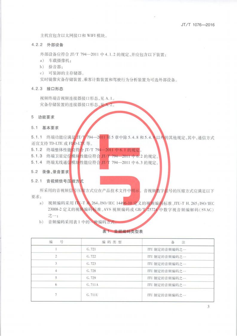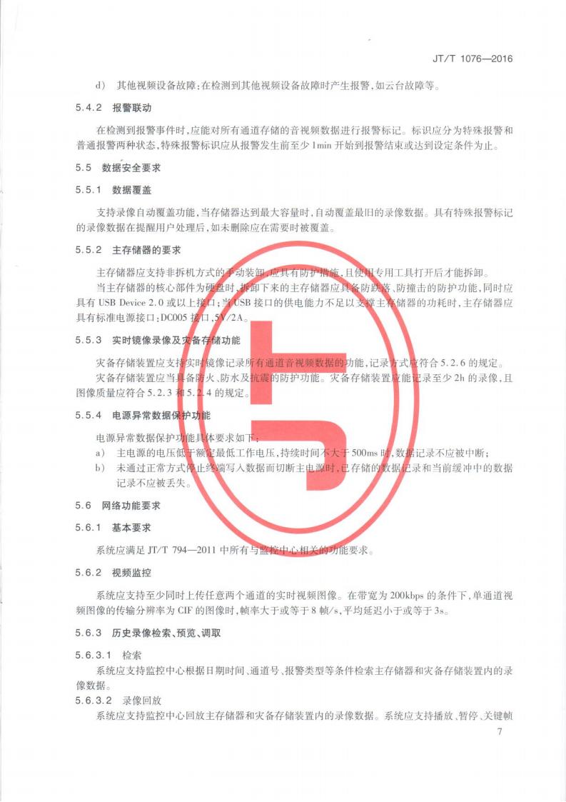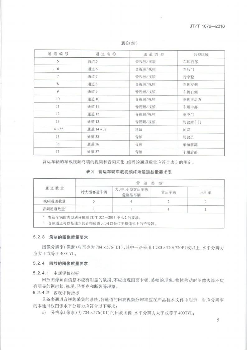 JTT 1076-2016 道路運輸車輛衛星定位系統車載視頻(終端技術要求)