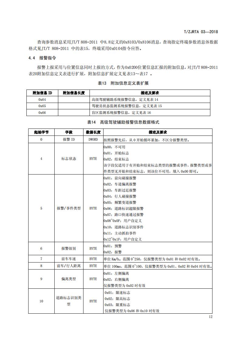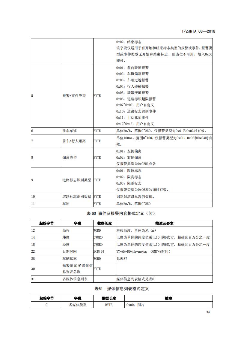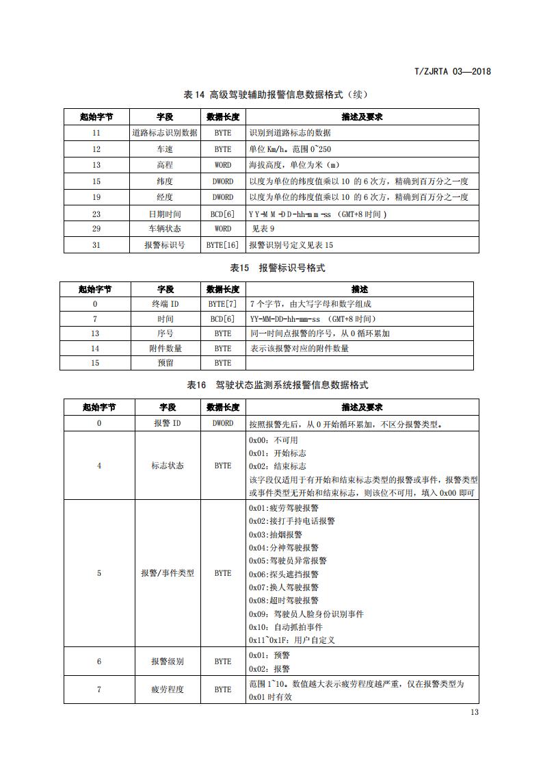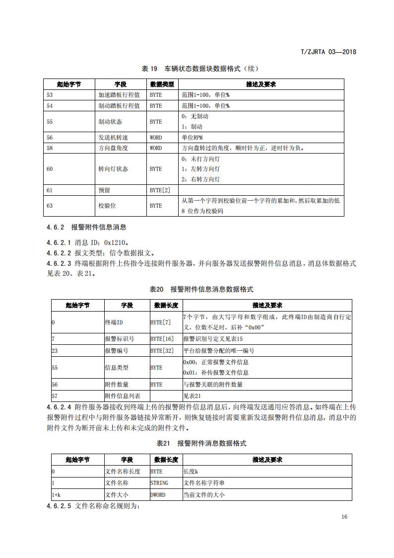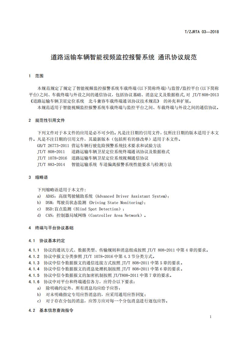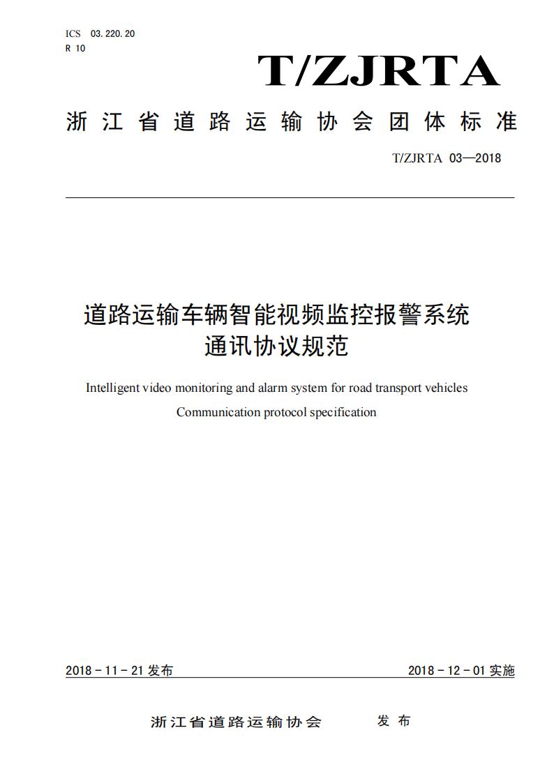 浙江省 TZJRTA 03-2018 道路運輸車輛主動安全智能防控系統(通訊協議規范)