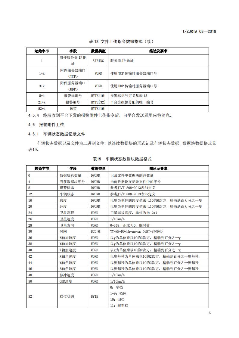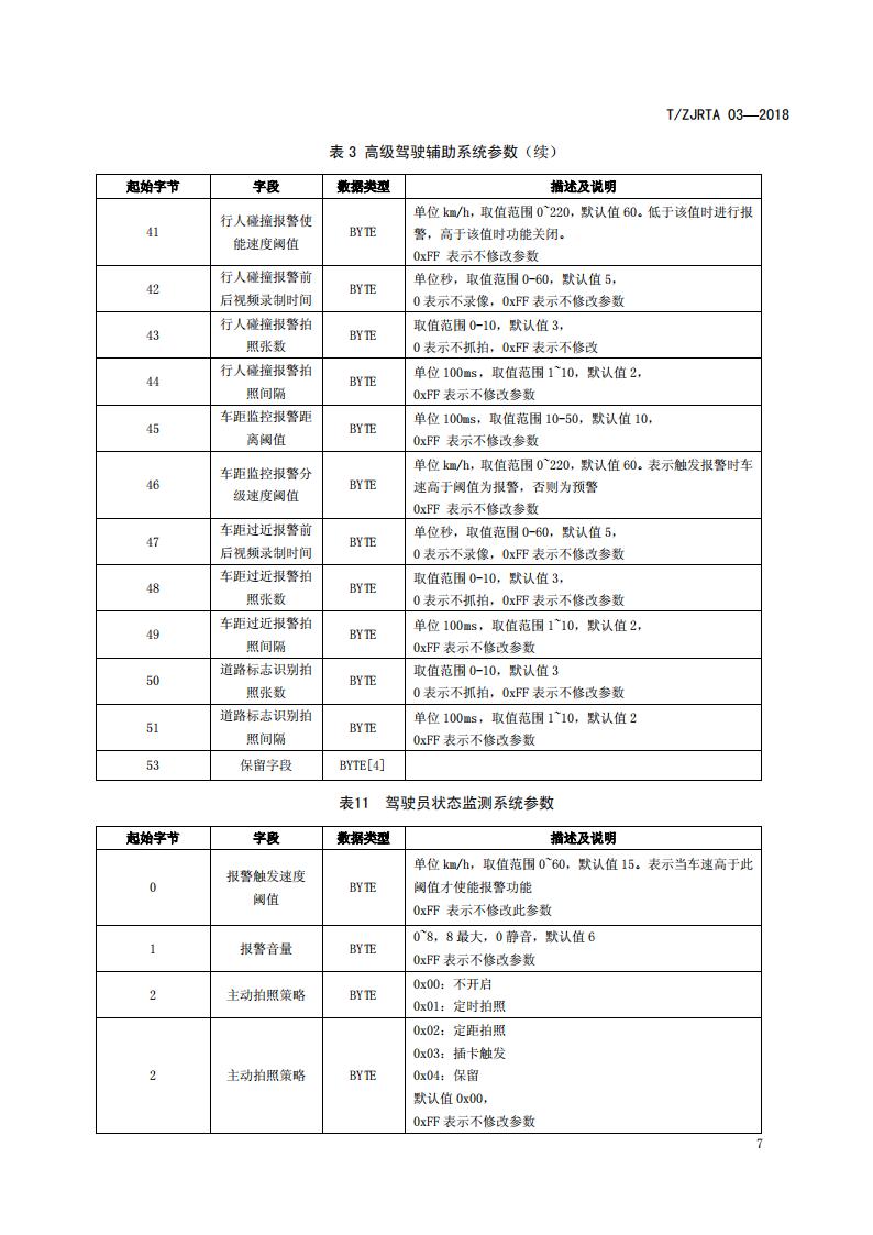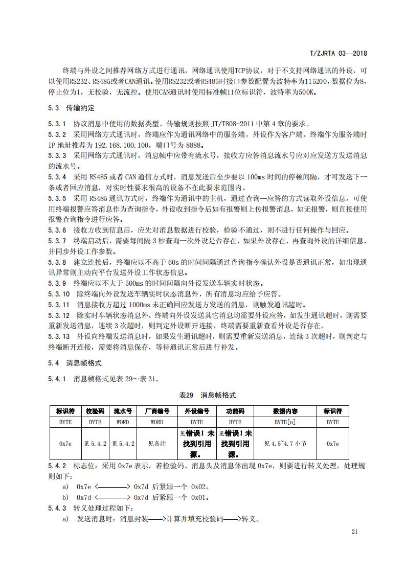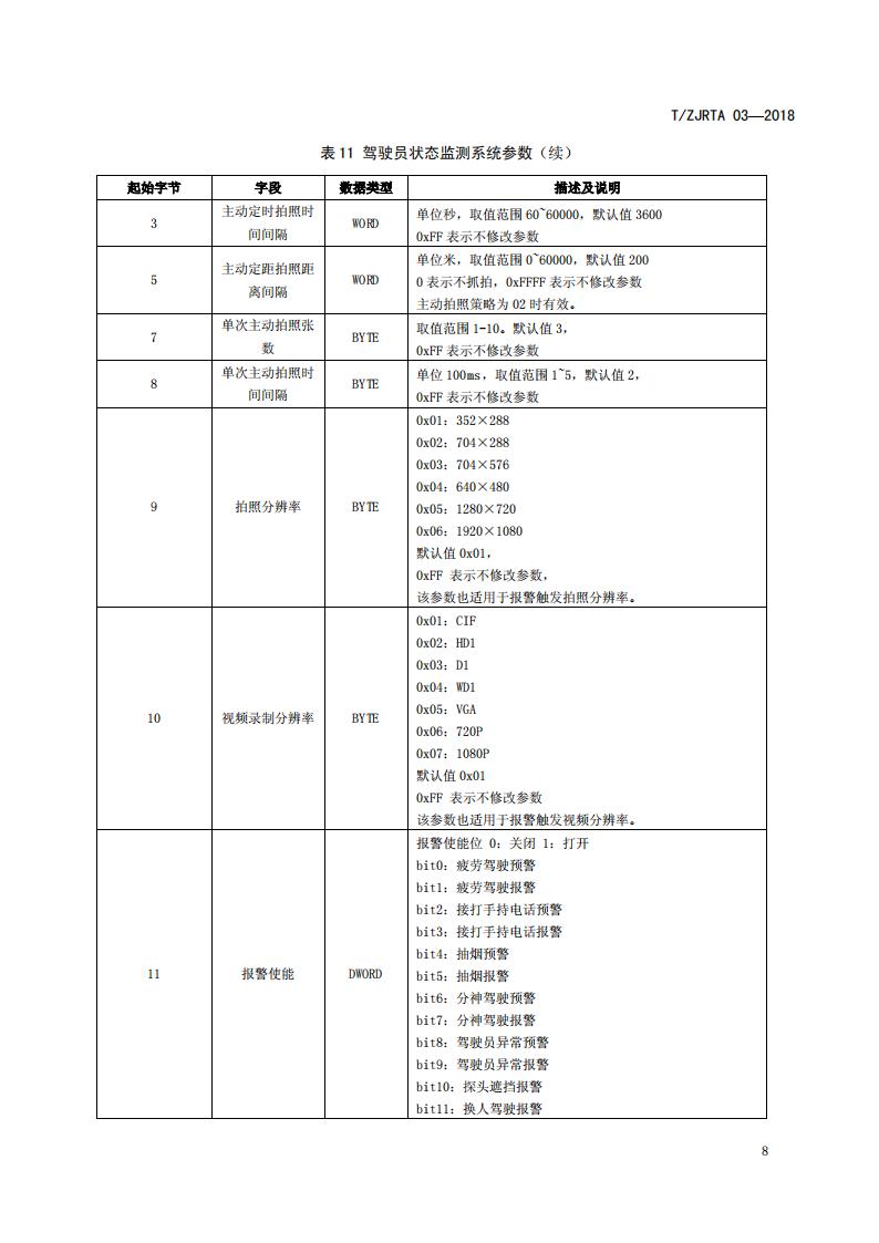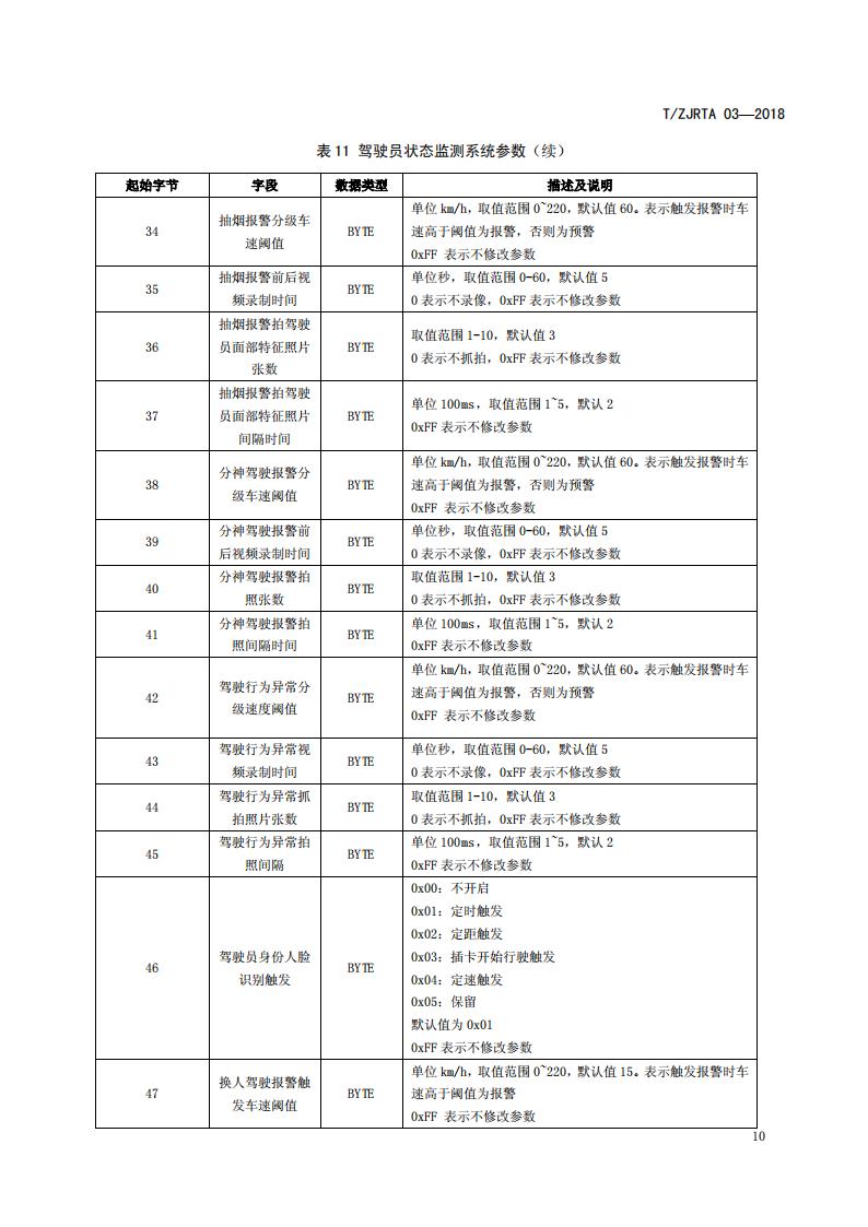 浙江省 TZJRTA 03-2018 道路運輸車輛主動安全智能防控系統(通訊協議規范)
