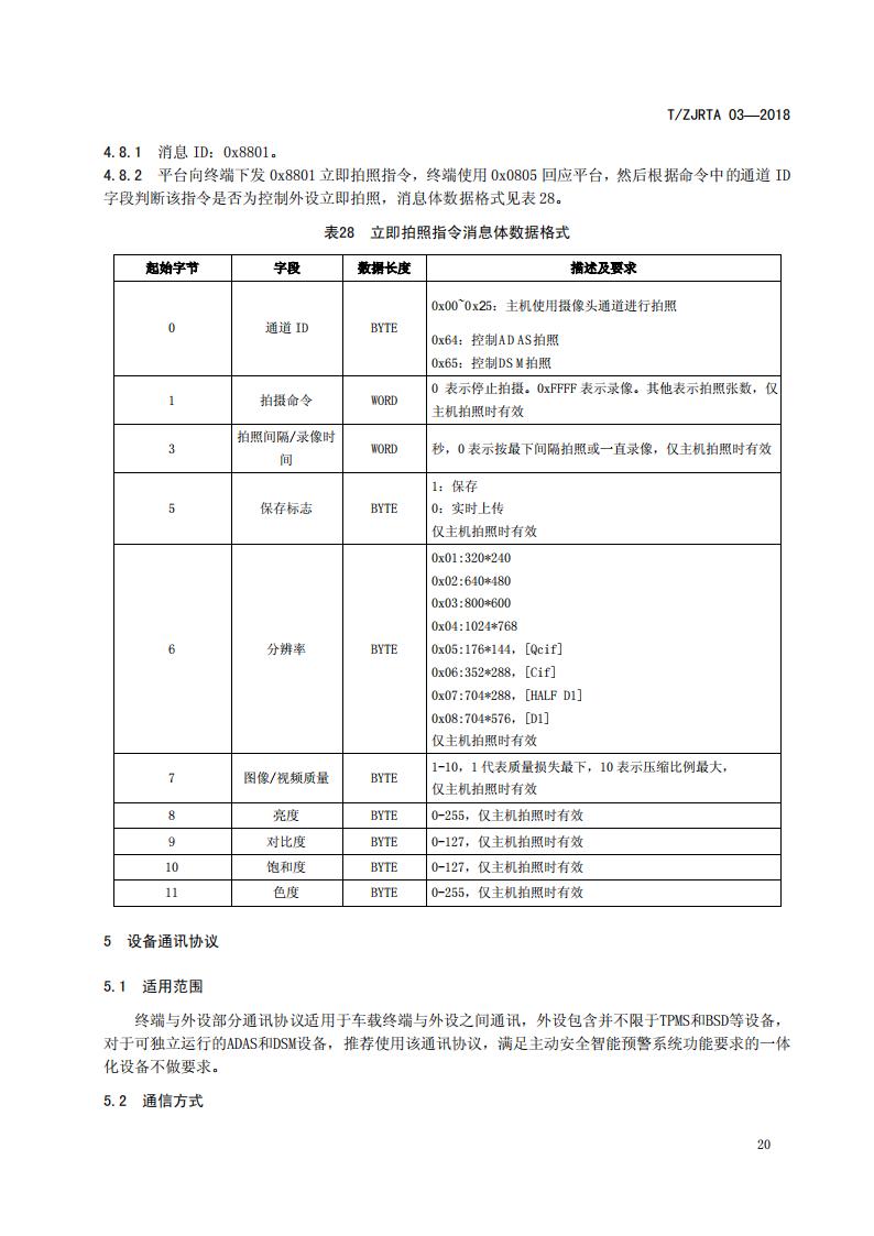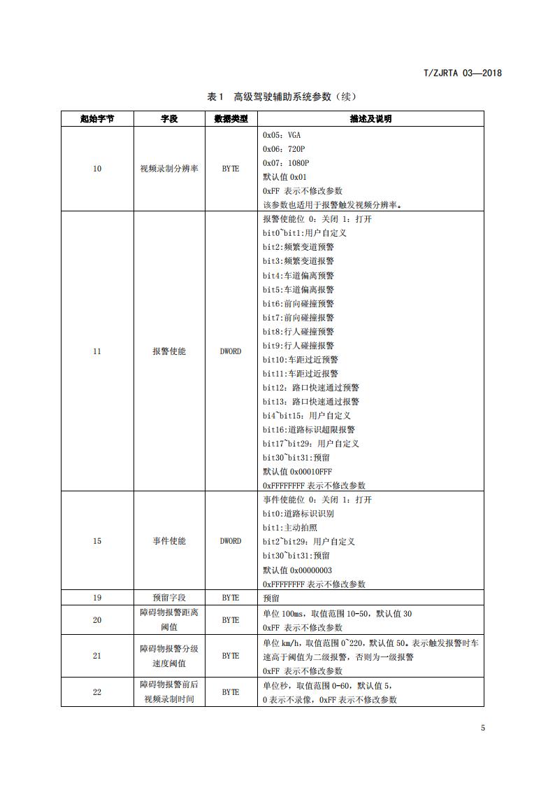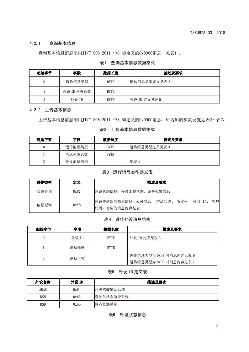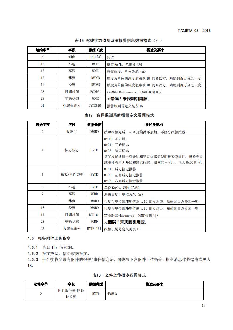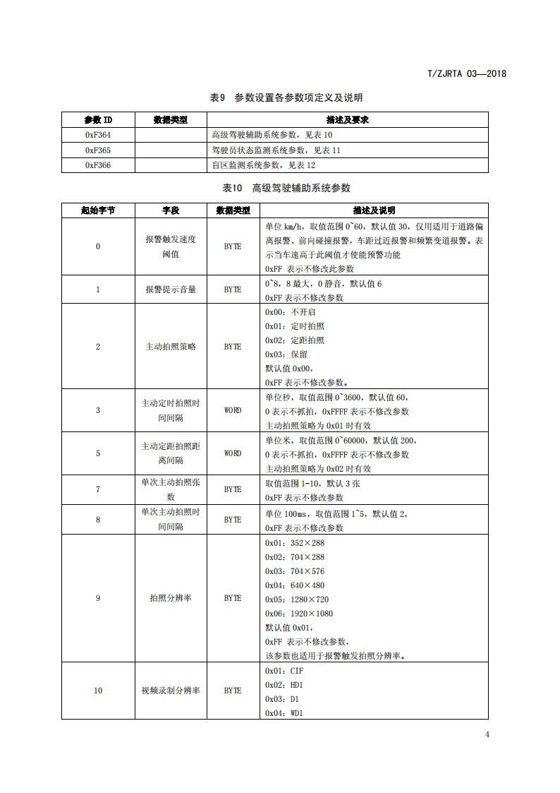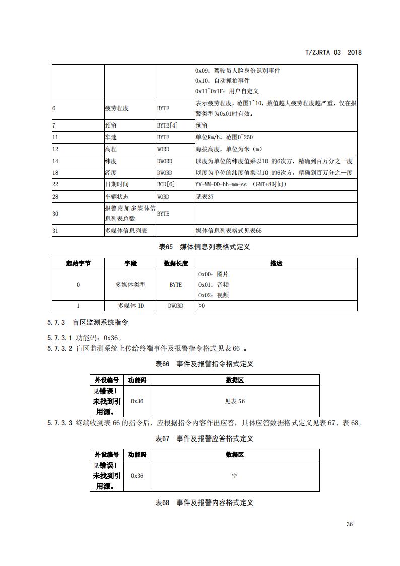 浙江省 TZJRTA 03-2018 道路運輸車輛主動安全智能防控系統(通訊協議規范)