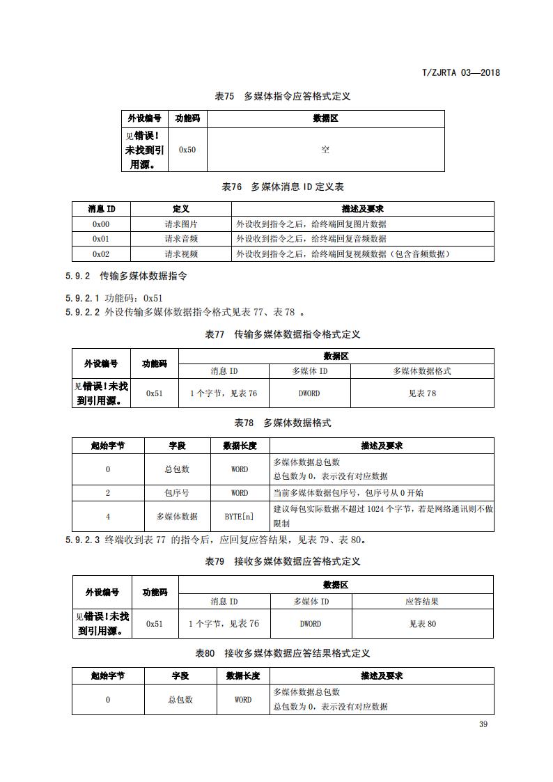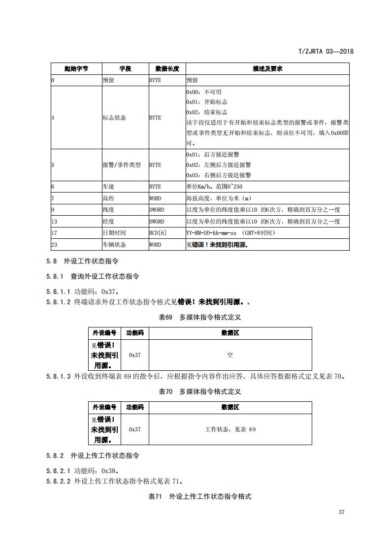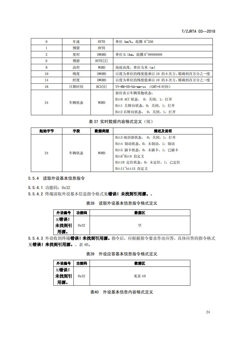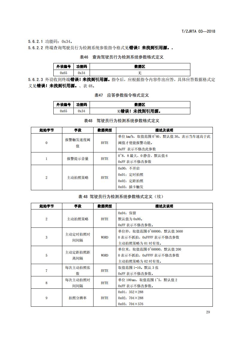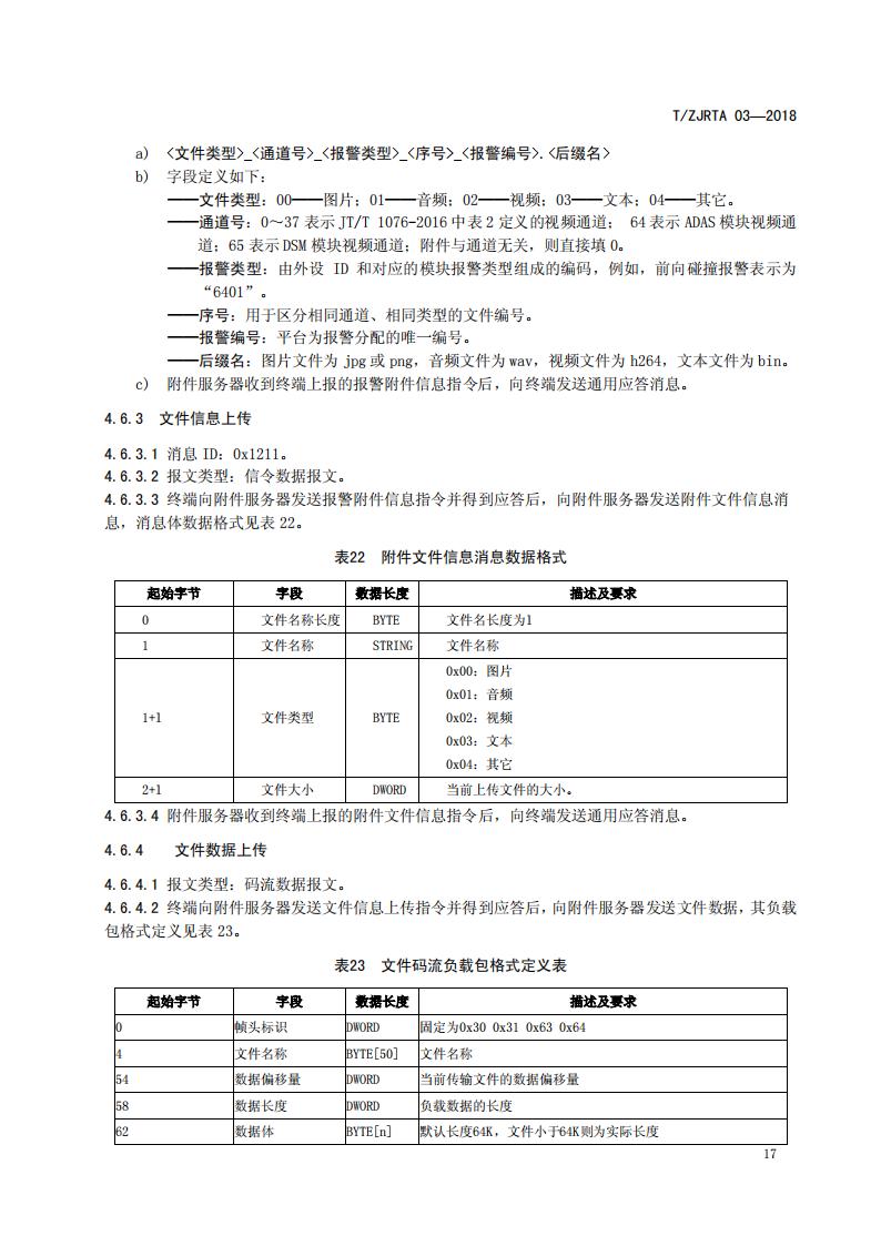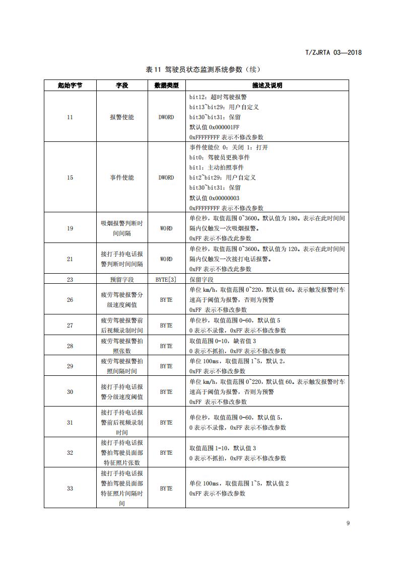 浙江省 TZJRTA 03-2018 道路運輸車輛主動安全智能防控系統(通訊協議規范)