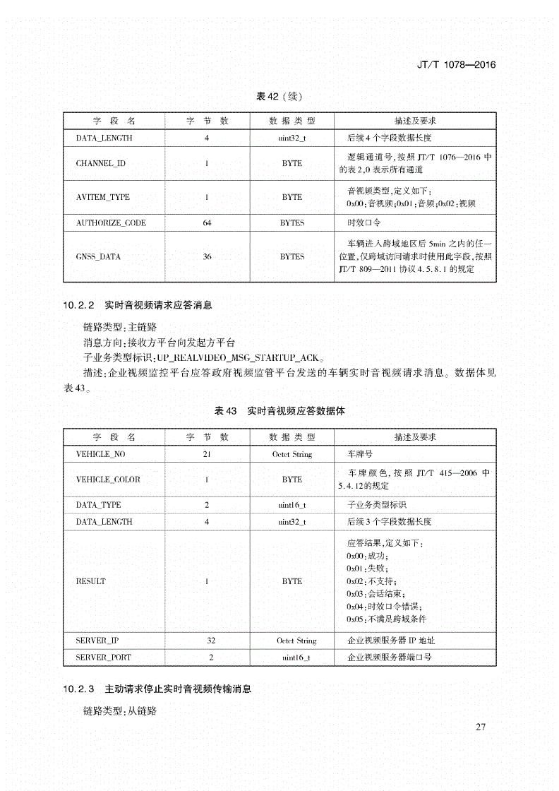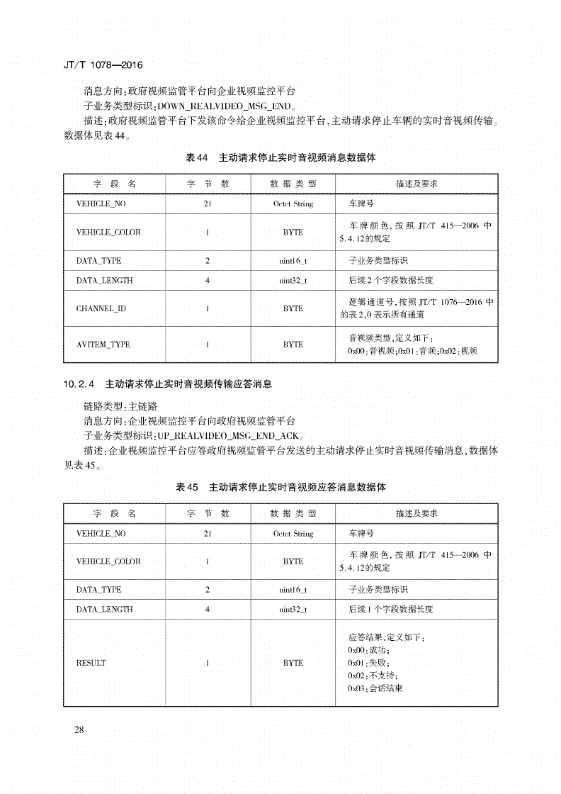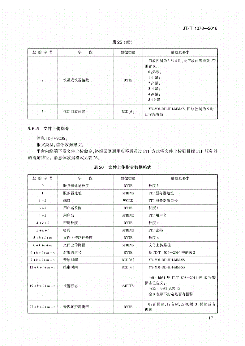 中華人民共和國交通運輸行業(yè)標準JT/T1078-2016道路運輸車輛衛(wèi)星定位系統(tǒng)視頻通信協(xié)議2
