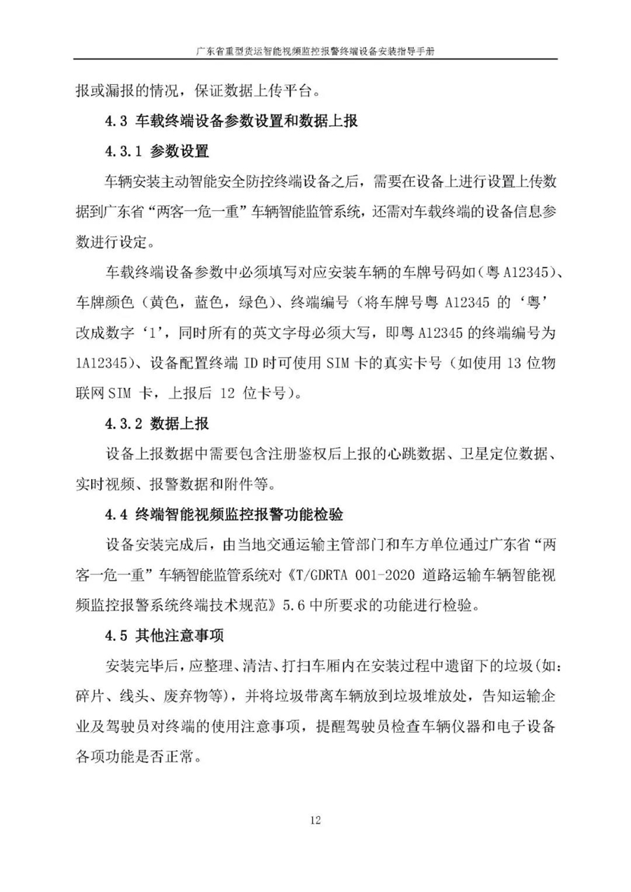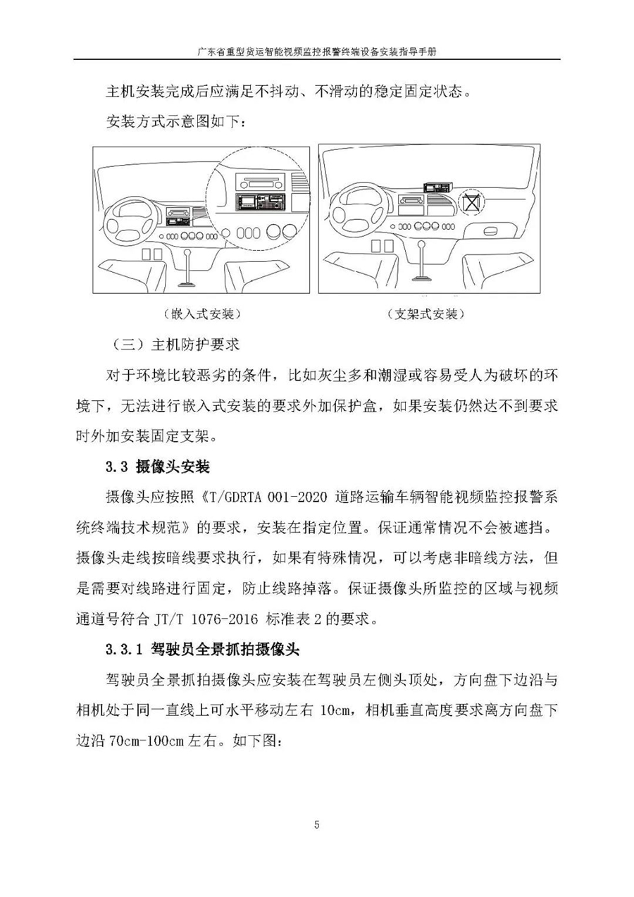廣東省重型貨運智能視頻監控報警終端設備安裝指導手冊