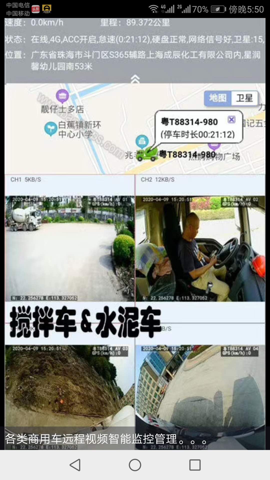 車載監控平臺手機APP監控效果圖